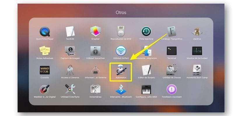 Первое, что нам нужно сделать, это получить доступ к Панель запуска> Папка Другие> Automator