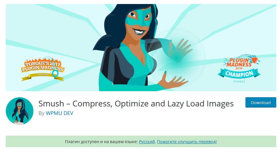 WPMU DEV предлагает сразу несколько плагинов для ускорения сайта. И WP Smush — часть этой группы. Он занимается сжатием изображений пачками либо в момент их загрузки на сайт. Есть платная и бесплатная версии, в бесплатной можно обрабатывать не более 50 изображений подряд. Поддерживаемые для оптимизации форматы: JPEG, PNG и GIF.