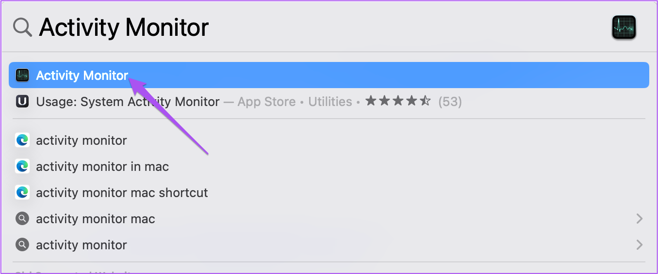 Шаг 1: Нажмите Command + Space, чтобы открыть поиск Spotlight, введите трекер активности, и нажмите Return.