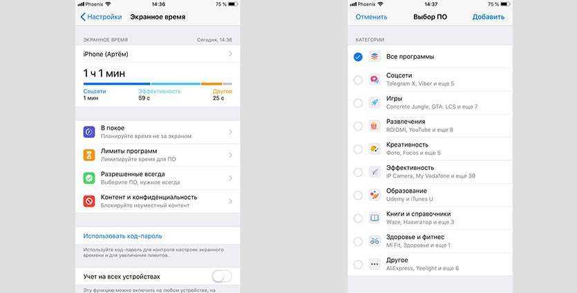 Включаем систему контроля в меню Настройки – Экранное время и продолжаем пользоваться iPhone. В воскресенье получим отчет о проведенном со смартфоном времени и используемых при этом приложениях.