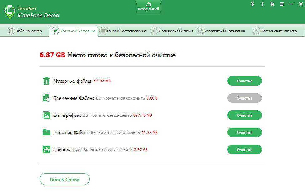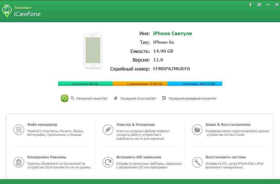 Способ 7. Tenorshare iCareFone для ускорения iOS системы