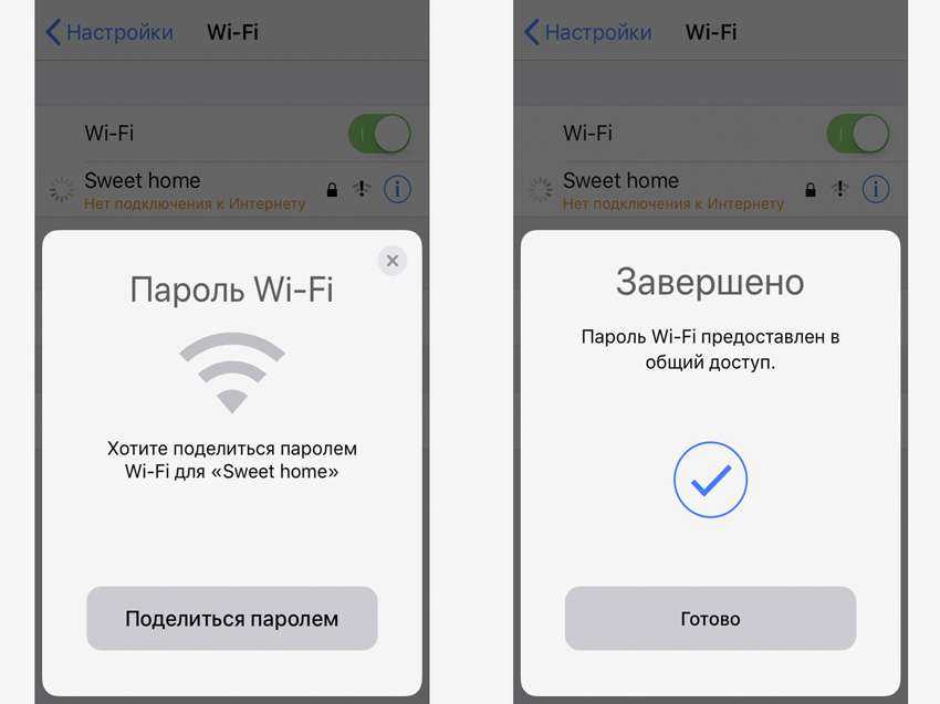 Поднесите один iPhone во время ввода пароля от Wi-Fi ко второму, на котором сеть уже используется > Подтвердите запрос на последнем