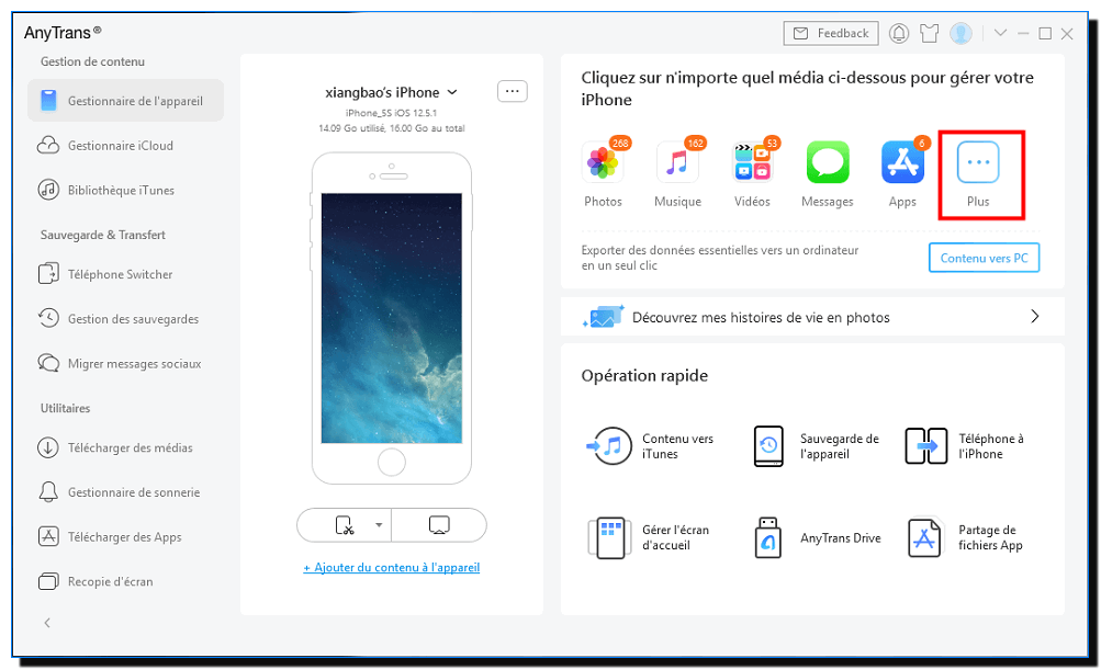 Шаг 1: загрузите AnyTrans на компьютер> Запустите AnyTrans и подключите оба устройства к компьютеру> Нажмите кнопку «Плюс», чтобы перейти на страницу управления контентом.![]()