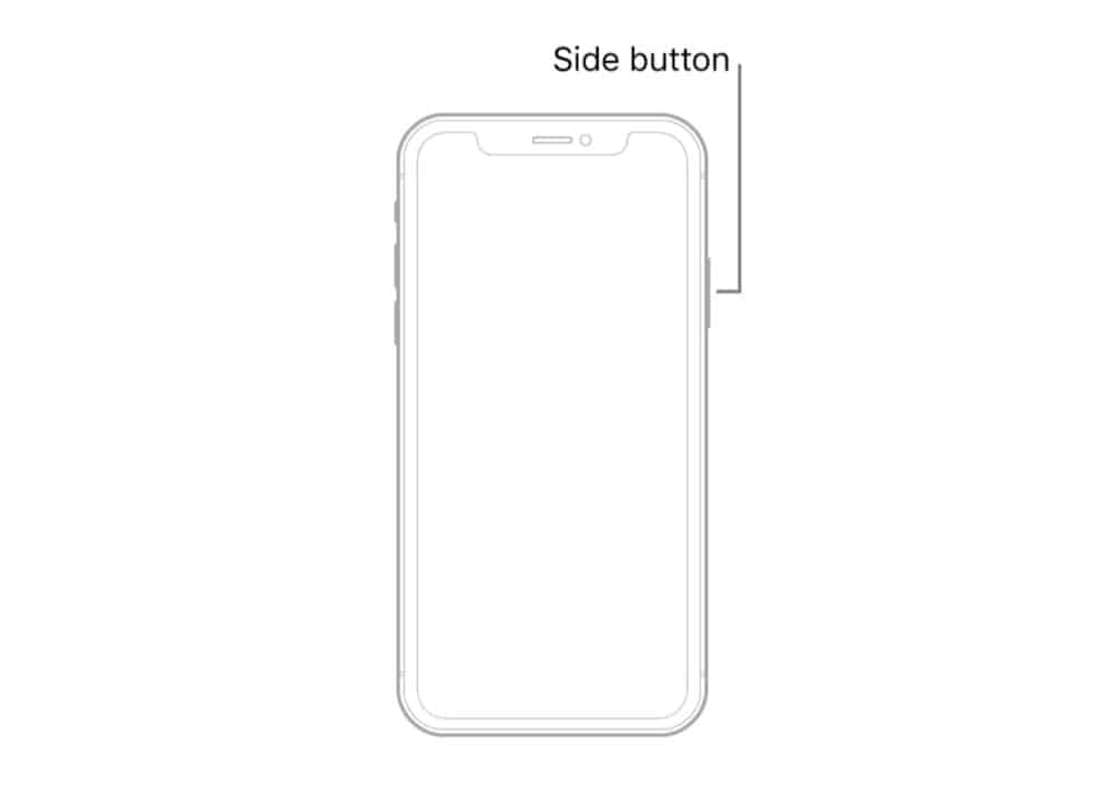 - Press and hold the Side button until the Apple logo appears, then release the Side button.