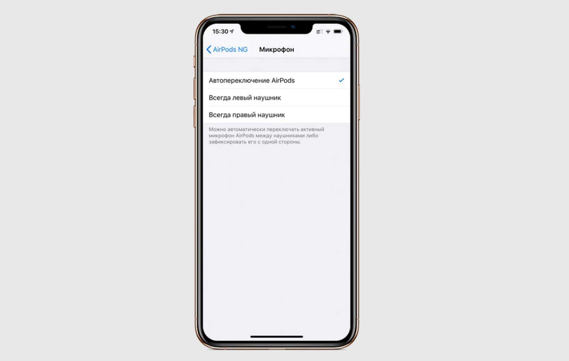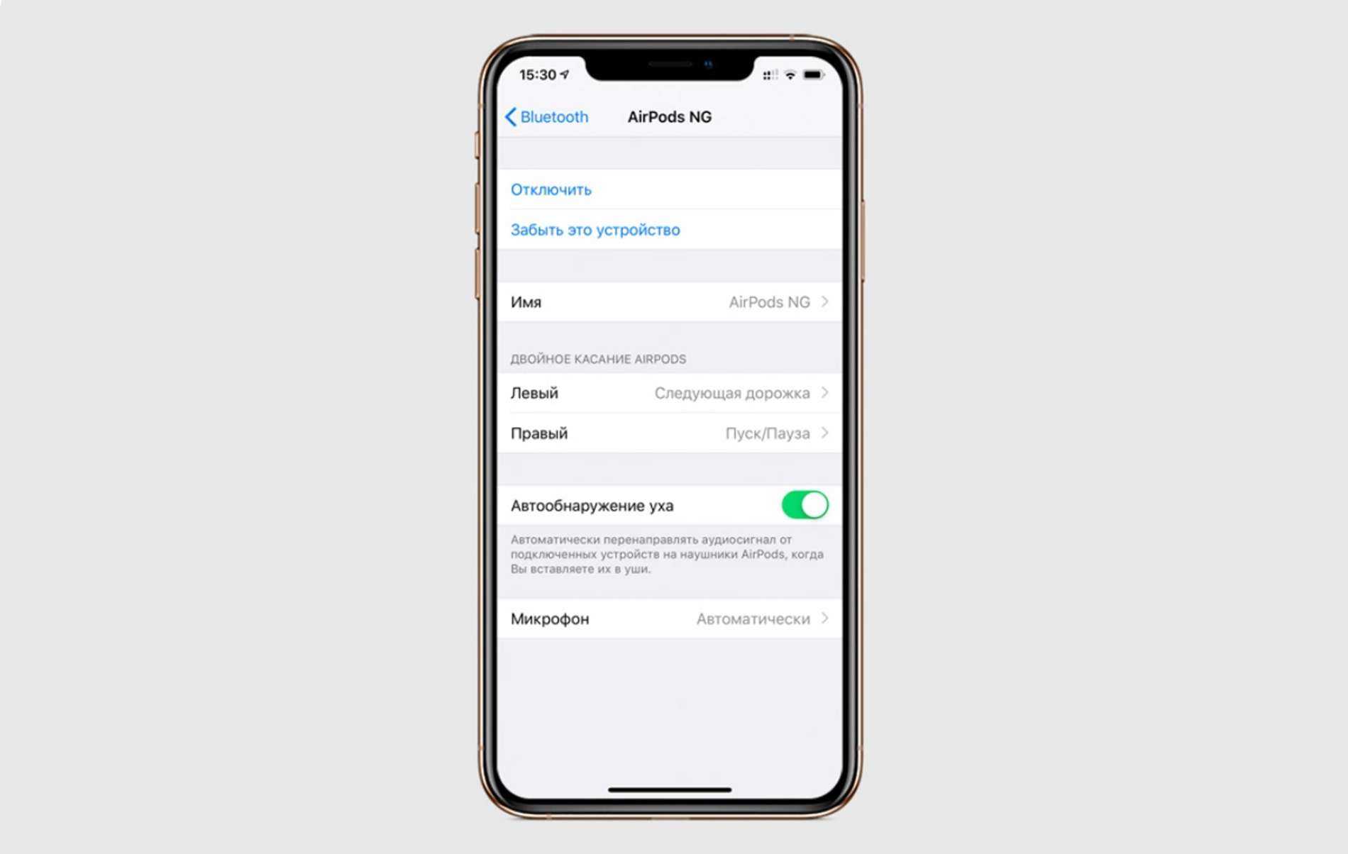 Прежде всего нужно проверить, подключены ли AirPods к устройству. Для проверки достаточно надеть наушники и подождать звука, оповещающего о подключении. Если AirPods не подключены, необходимой опции в меню настроек просто не будет.