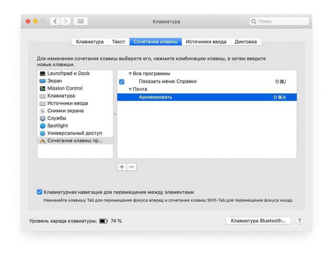 Ознакомиться с большинством (но не со всеми) клавиатурных комбинаций Mac OS X можно на вкладке «Сочетания клавиш» пульта «Клавиатура» в Системных настройках: