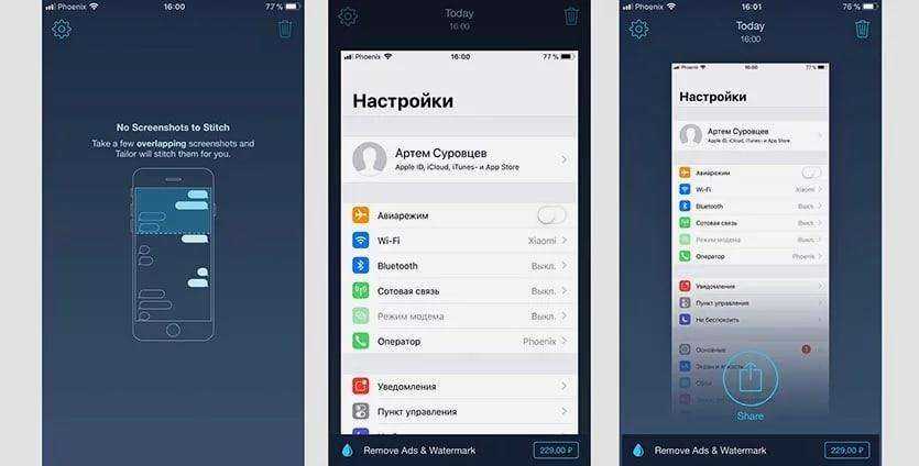 - Запускаем приложение снова и загружаем в него необходимые снимки экрана. Она самостоятельно склеит необходимые для пользователя фрагменты.