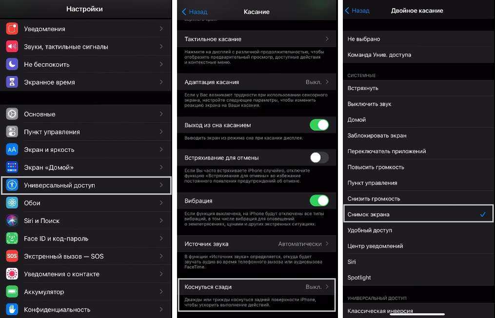 Еще один весьма удобный, но почему-то по умолчанию скрытый от пользователей способ сделать скриншот на iphone 11 – двойным стуком по корпусу айфона. Как и в предыдущем варианте, эту функцию сначала нужно активировать.