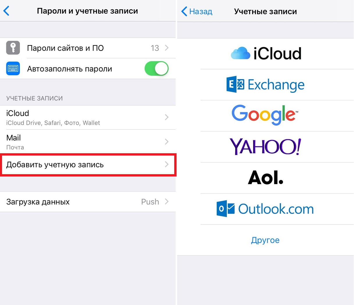 Если у Вас уже добавлена учетная запись, можно добавить и другие. В приложении «Почта» выберите «Почта» > «Добавить учетную запись», выберите тип записи, затем введите данные своей учетной записи. Убедитесь, что для учетной записи установлен флажок «Почта».