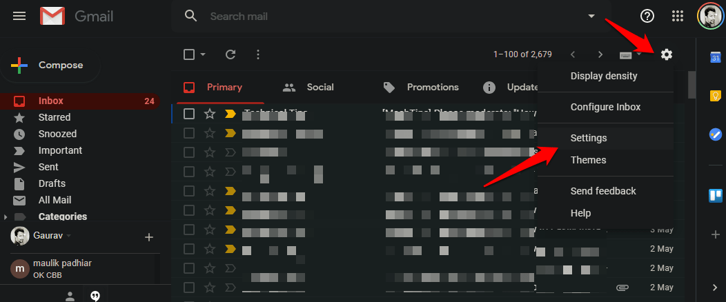 Щелкните значок шестеренки в правом верхнем углу экрана и выберите «Настройки».