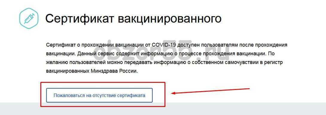 В случае отсутствия данных нужно нажать на кнопку «Пожаловаться на отсутствие сертификата». Далее заполнить заявление и дождаться ответа в личном кабинете.