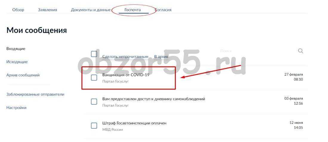 Письмо с сертификатом можно проверить через раздел государственная почта в личном кабинете. Для этого необходимо нажать на ФАМИЛИЮ в самом верху сайта, далее ОБЗОР, затем ГОСПОЧТА. Там должно отображаться письмо о прохождении вакцинации.