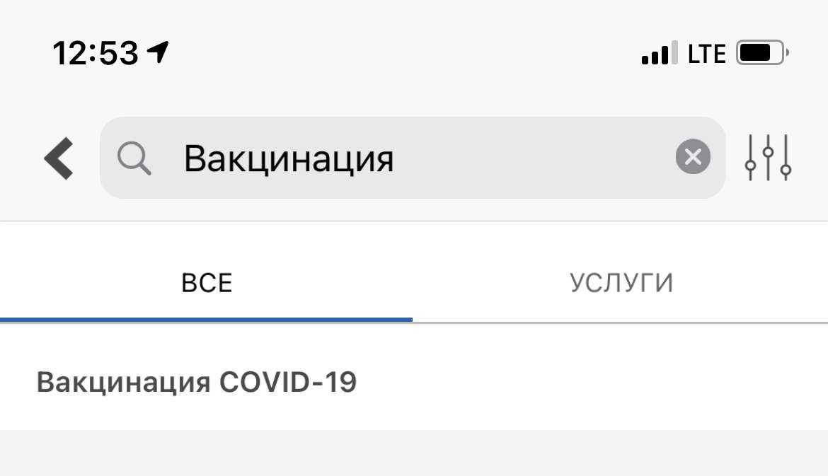 В форме поиска вводим «Вакцинация от COVID-19» и переходим на страницу с результатом.