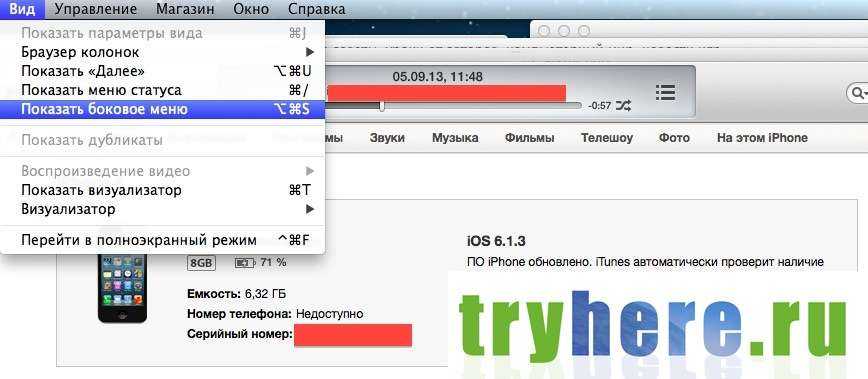 3. После того, как вы запустите iTunes, Вам сразу же захочется перенести купленные программы с iphone на компьютер, но прийдется не много разобраться с самим iTunes. Если у Вас нет бокового меню, и программа выглядит как на картинке ниже, то Вам нужно будет включить в настройках боковое меню.