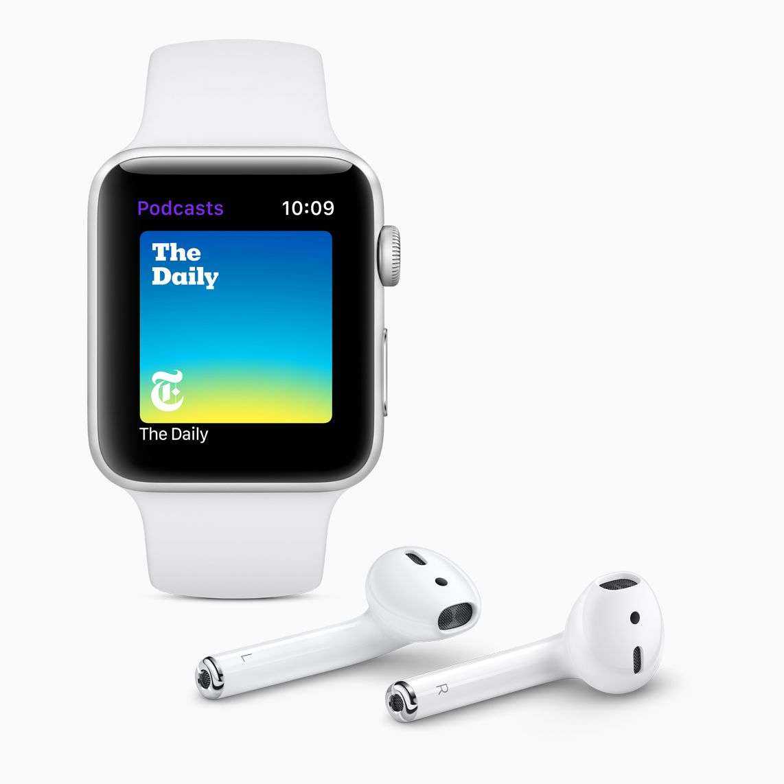 Владельцы Apple Watch получили встроенную поддержку для прослушивания подкастов непосредственно на своих запястьях с добавлением приложения Apple Podcasts в watchOS 5; Приложение способно воспроизводить и загружать эпизоды непосредственно в приложение для часов.
