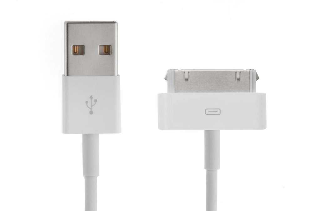 Для сопряжения с ПК вам нужен USB-кабель. Он должен входить в комплект поставки iPhone — лежать в коробке. Другие провода лучше не использовать. Если оригинальный кабель утерян или повреждён, можно приобрести такой же. Главное, подобрать комплектующие, которые подходят для вашего гаджета. Провод с разъёмом 30 пин («толстая зарядка») предназначен для девайсов старых моделей. Lightning-коннекторы («тонкие») — для устройств нового поколения.