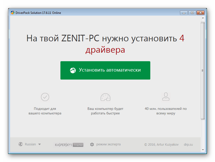 Есть ряд программ, которые способны установить драйвер на Ваш компьютер. Они автоматически сканируют систему и ищут то, чего не достает. Либо обновляют старые версии того же программного обеспечения. Если Вы с таким софтом еще не сталкивались, то прочитайте нашу статью о лучших представителях.