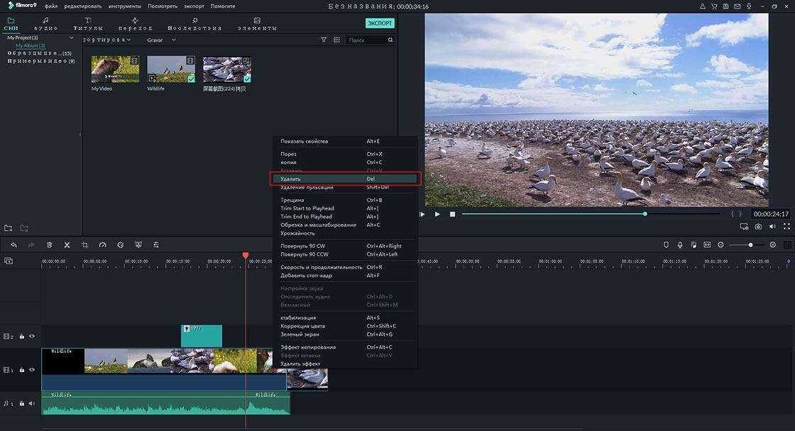 Затем выберите ненужную часть видеоклипа на шкале времени и после этого нажмите «Удалить», чтобы обрезать ее.
