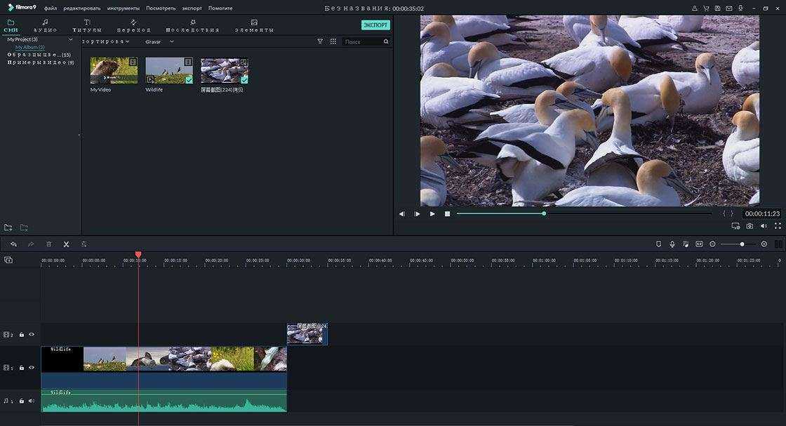 - Выбрав инструмент «Экспорт» и настроив качество сохраняемого видео, экспортировать его на ваше устройство.