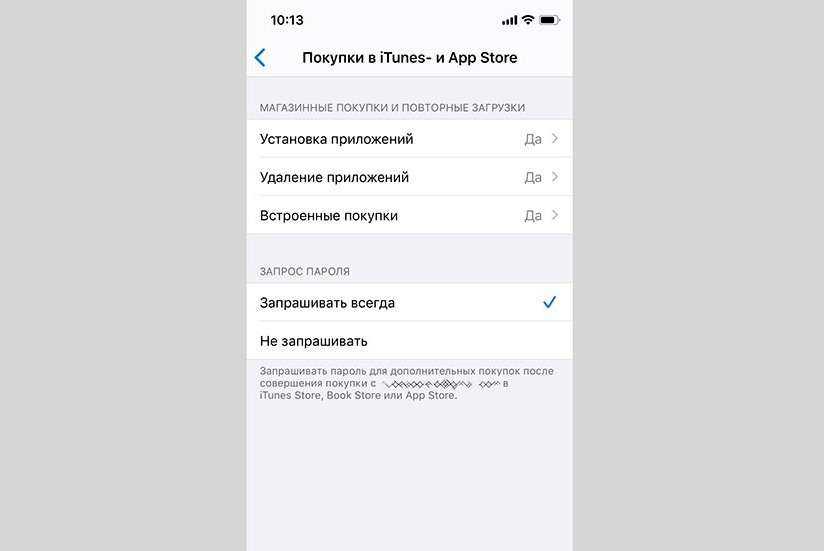 - Предотвращение покупок в приложениях, iTunes и App Store