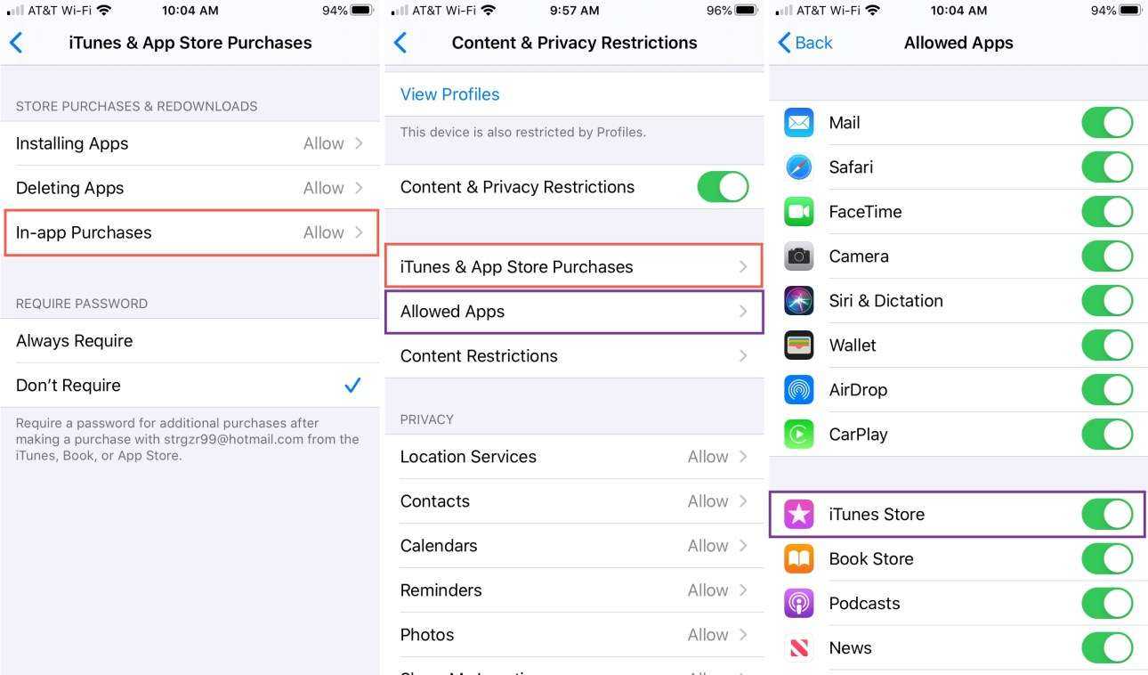 Если вы используете Экранное время для себя или ребенка, который использует ваше устройство совместно, вы можете ограничить покупки в этих настройках. Чтобы быстро это проверить, выполните следующие действия.