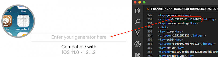 Step 5. Open your SHSH2 blob file using a text editor, and search for the generator.