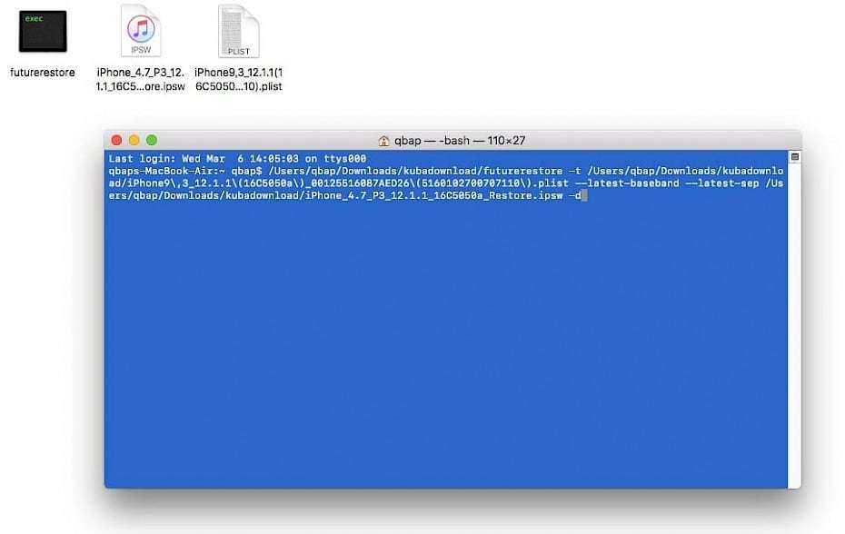 A video tutorial on how to use FutureRestore to downgrade to unsigned iOS with saved SHSH2 blobs