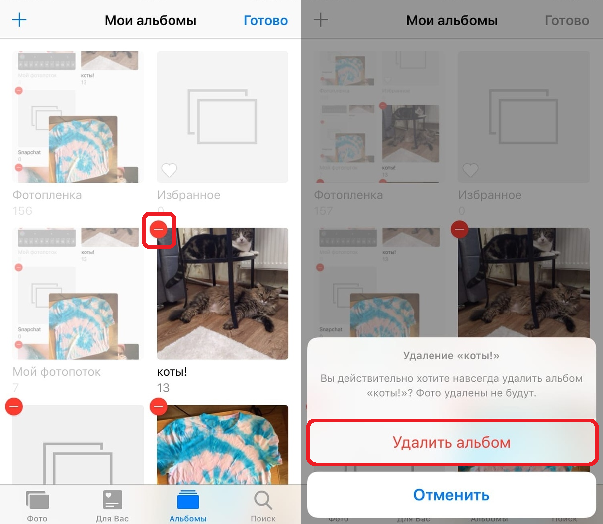 Как удалять альбомы