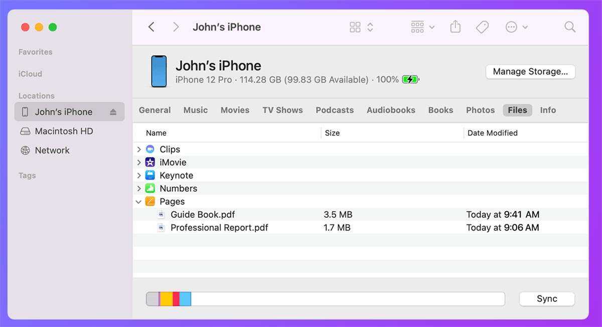 При переносе данных из сторонних программ найдите раздел Файлы в приложении Finder (для Mac) или iTunes (для Windows).