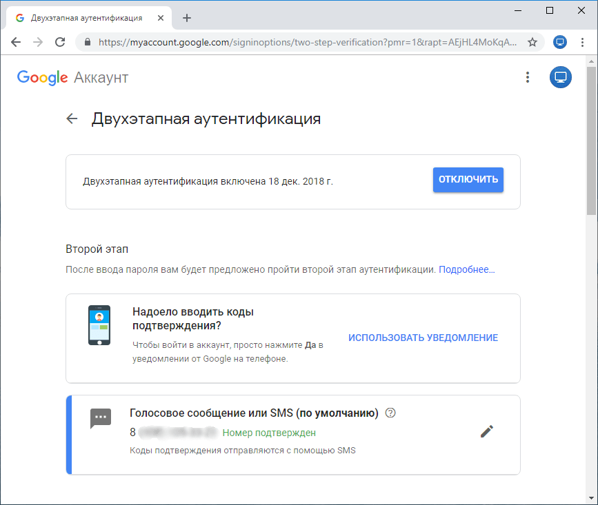 Как и в предыдущем методе, в новой схеме возможно получение одноразового пароля в виде СМС или голосового звонка на доверенный телефонный номер. Однако, в отличие от двухэтапной проверки, пользователю в любом случае будут доставлены push-уведомления, и неавторизованную попытку зайти в учетную запись пользователь может заблокировать с любого из своих устройств.