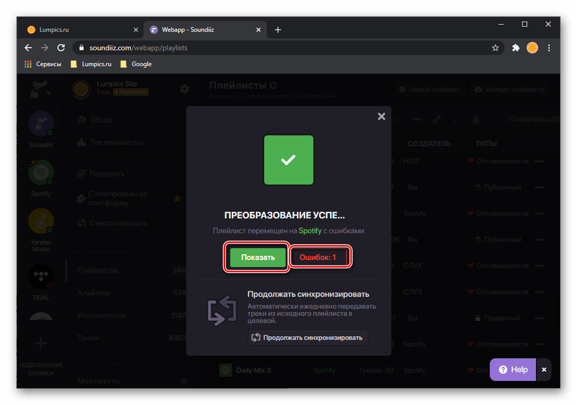 Soundiiz, как мы и сказали в самом начале, отлично справляется с задачей экспорта плейлистов, однако сервис не лишен недостатков. Так, в его бесплатной версии за раз можно переносить не более одного списка, состоящего из не более чем 200 треков. Эти ограничения можно снять, если оформить Premium-подписку, которая, помимо прочего, предоставляет возможность синхронизации данных.