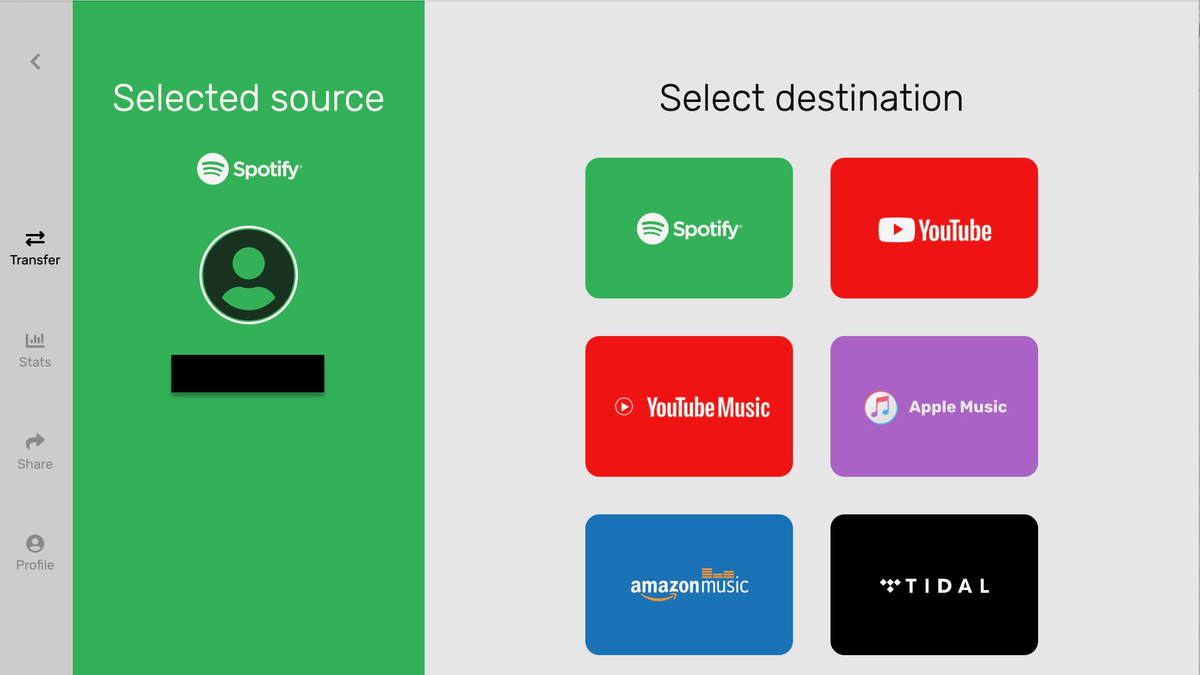 Для начала работы нужно установить приложение: оно доступно для смартфонов и ПК любой ОС. После установки нужно также выбрать Spotify в качестве источника и определить платформу, на которую вы хотите перенести плейлист. Затем — отметить нужные плейлисты галочками.