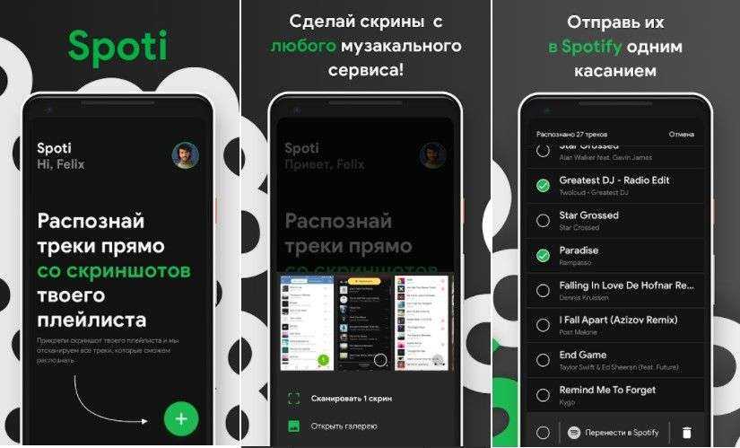 Главная фишка SpotiApp — возможность переноса плейлистов через распознавания на скриншотах. Такой способ убирает необходимость логиниться в разных сервисах для переноса музыки, отметили разработчики. В среднем на скриншот помещается 10 треков.