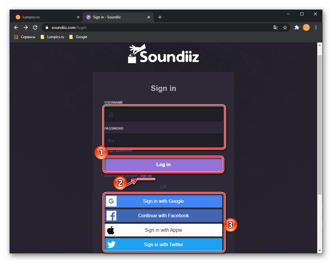 - Перейти в веб-приложение Soundiiz, пройти авторизацию;