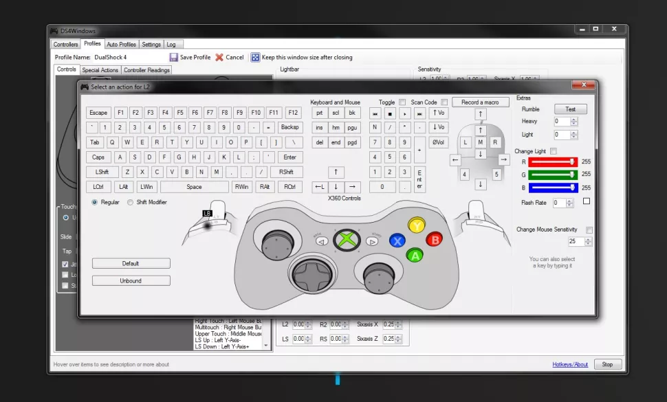 Это открывает еще одну устрашающую, но простую страницу. Просто нажмите кнопку, роль которой вы хотите, чтобы L2 — в данном случае L1. Вуаля, ваш левый курок теперь будет действовать как левый бампер. Повторите этот процесс с другими триггерами и буферами, чтобы завершить изменение и предотвратить дублирование. Вы можете сохранить настройку этой кнопки как отдельный профиль и переключаться между профилями на вкладке «Контроллеры».