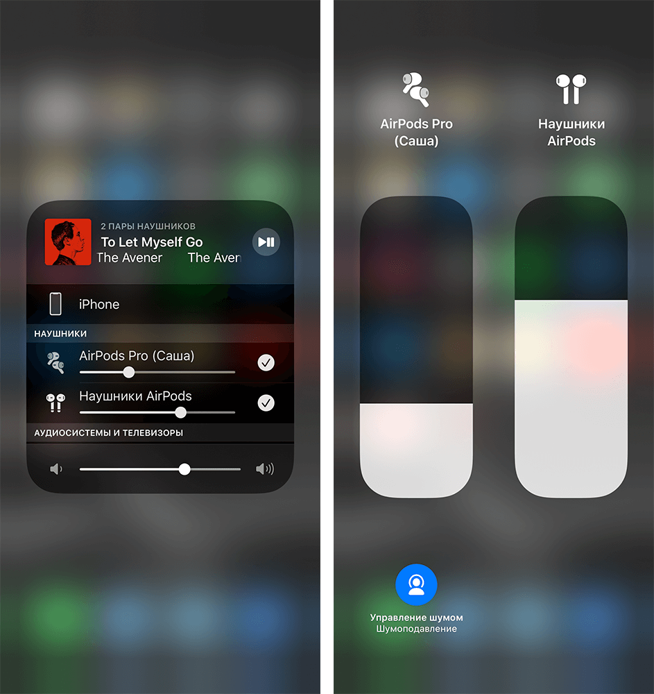 - Нажмите и удерживайте палец на карточке музыкального плеера в правом верхнем углу Пункта управления до появления настроек аудио.