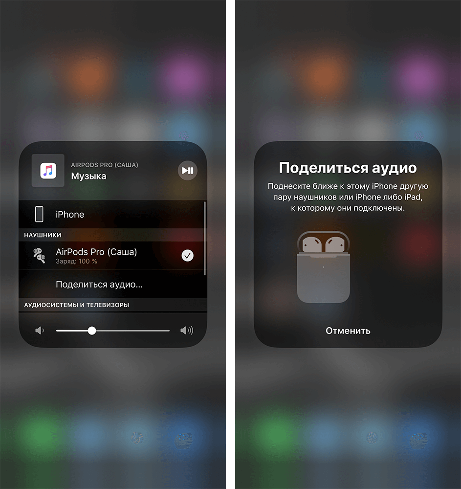 Нажмите на кнопку «Поделиться» и поднесите вторые AirPods или iPhone