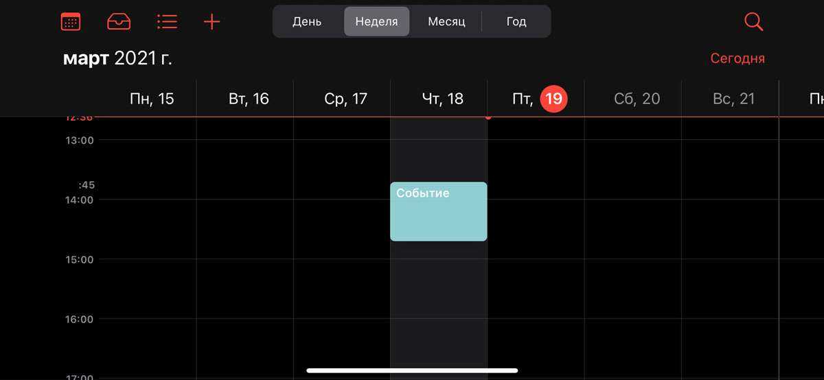 События в Календаре можно создавать длинным нажатием на экран, но только если мы просматриваем события недели.