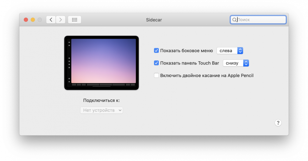 Боковое меню Sidecar на iPad