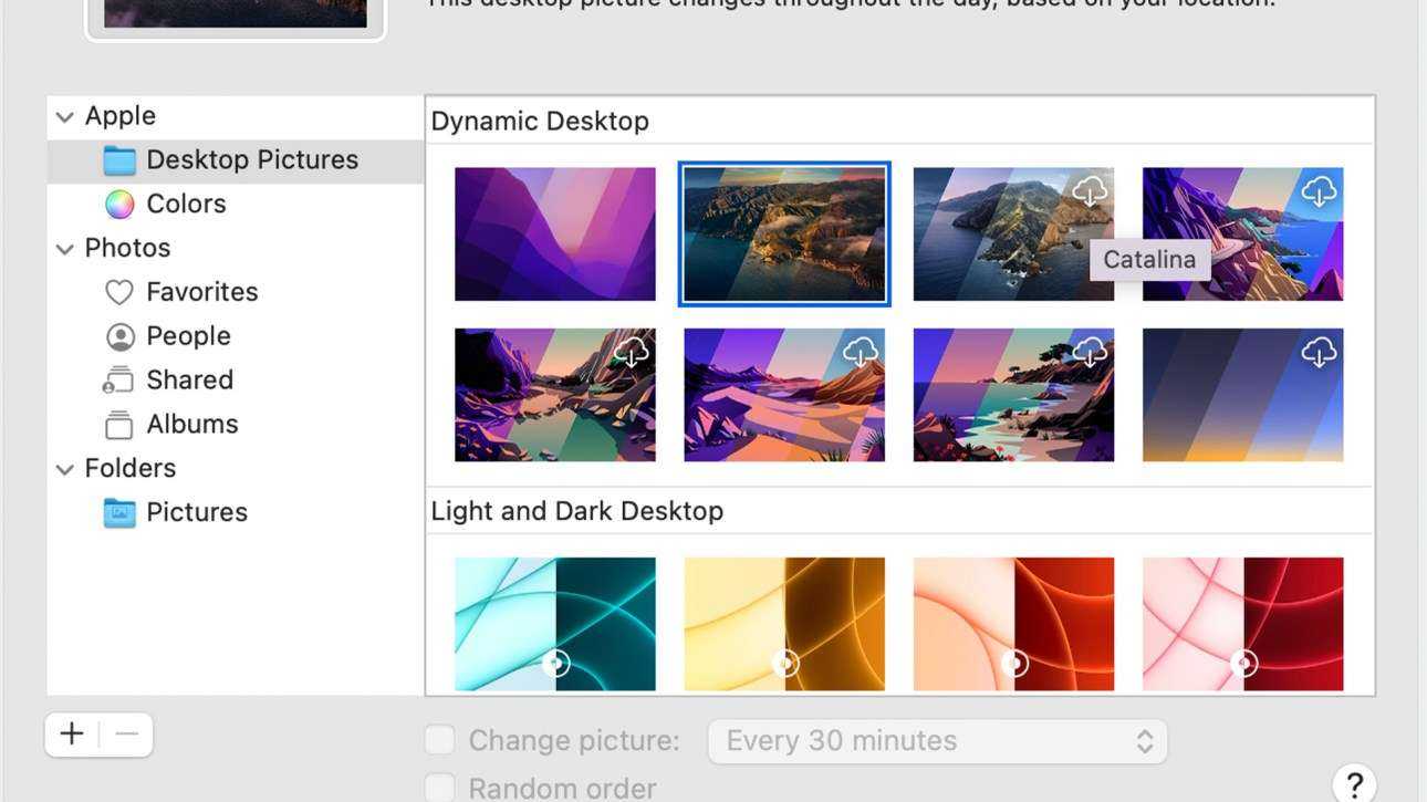 - Вы увидите раздел «Динамические обои». Эти обои обладают особым свойством. Они меняют цвет в зависимости от времени суток. У моего Macbook Air по умолчанию восемь, и мне пришлось загрузить семь из них. Выберите тот, который вы хотите, и он изменит ваш фон на него. Изменения цвета происходят автоматически без участия пользователя.