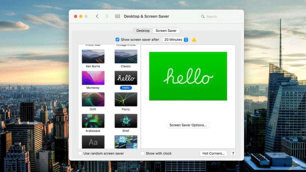Большинство экранных заставок Mac – умные маленькие педерасты; они знают, как установить себя. Как только вы закончите загрузку заставки, вы можете установить ее автоматически всего парой кликов или нажатий.