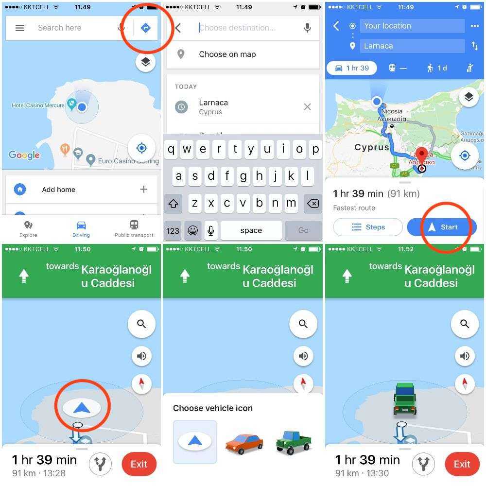 Чтобы сменить автомобиль на Google Картах, достаточно просто нажать синий значок автомобиля, когда вы начнете путешествие.