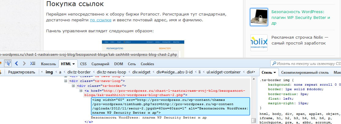 Для примера я возьму этот же сайт и изменю предыдущий анонс статьи “ ” Открываю главную страницу в Google Chrome. Нажимаю ПКМ по элементу, который я хочу изменить, например заголовок анонса и выбираю “Посмотреть код”.