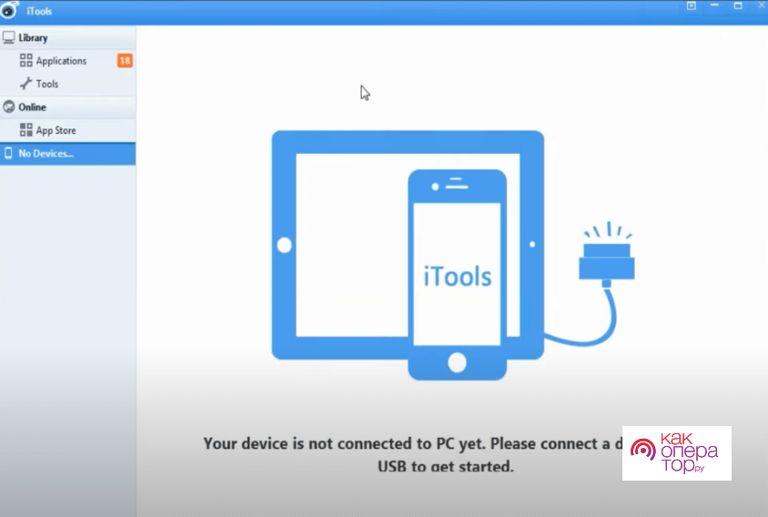 Программа в автоматическом режиме определит наличие подключённого гаджета.