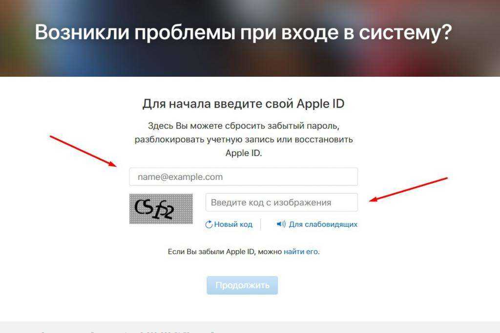 На следующем экране можно будет попытаться ввести тот адрес электронной почты, который больше всего подходит на роль «правильного». Также сайт Apple предложит найти ваш ID – для этого потребуется нажать на специальную ссылку.