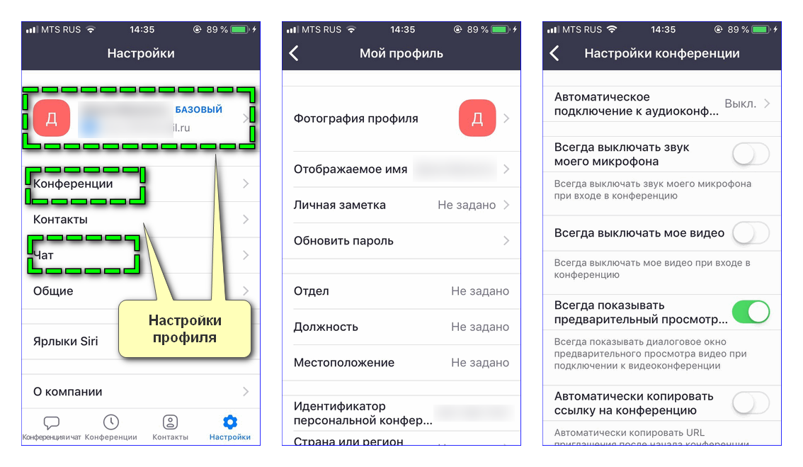 Через раздел «Настройки» приложения Zoom для iPhone пользователь может изменить параметры: