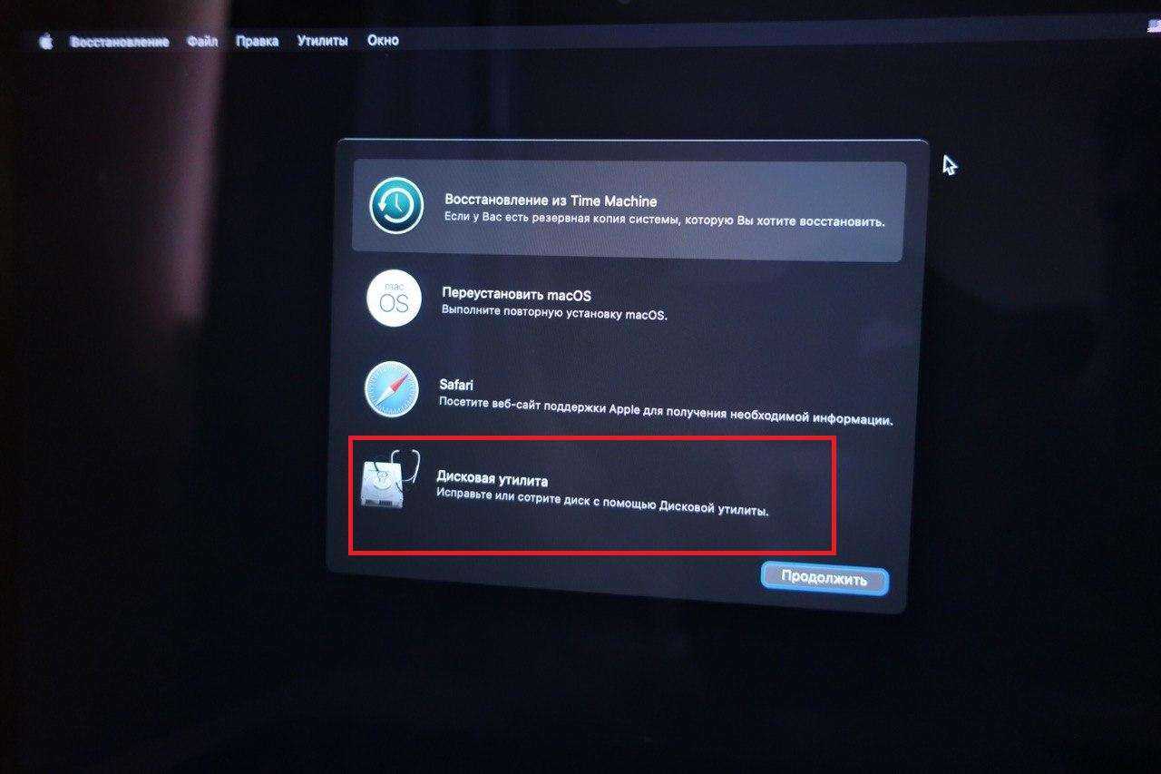 - Выберите пункт Дисковая утилита.