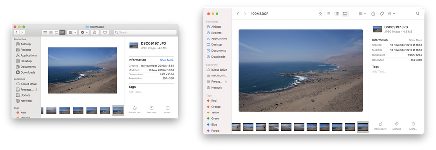 И последнее, что следует отметить: в Finder панель поиска в правом верхнем углу была заменена на иконку поиска, которая расширяется при нажатии на нее. Это изменение кажется немного противоречивым, поскольку в приложении «Просмотр» поиск не был изменен. Уверен, это приведет к тому, что меньшее количество людей откроют для себя совершенство поиска Spotlight в Finder.