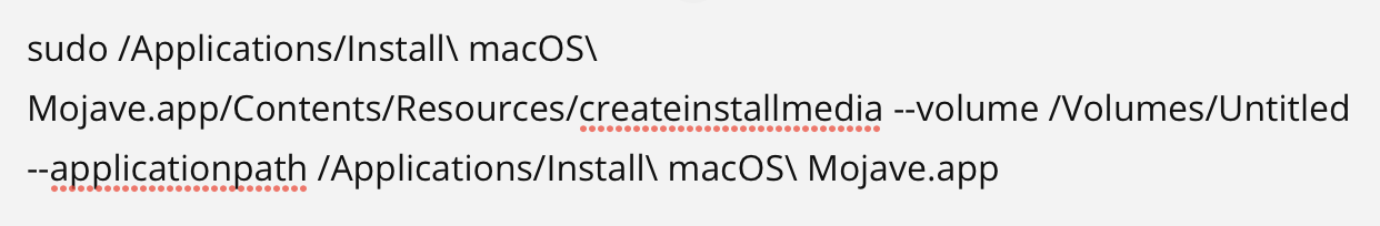 sudo/Applications/Install \ macOS \ Mojave.app/Contents/Resources/createinstallmedia –volume/Volumes/Без названия –applicationpath/Applications/Install \ macOS \ Mojave.app