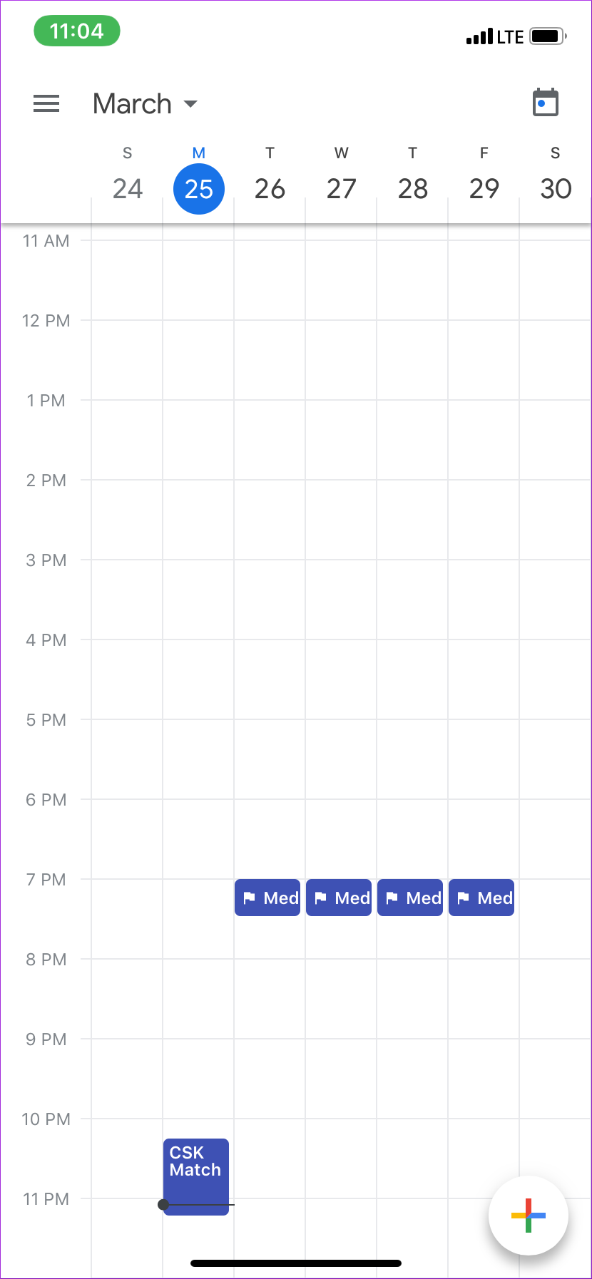 Теперь событие будет отображаться на главном экране приложения Google Calendar.
